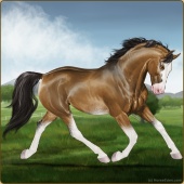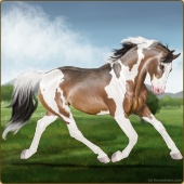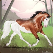 Name: Marked Hero | EEPAge: 16 Gelding Color: Golden Bay Tobiano Breed: Warmblood Foal Rating: E/E/P |  |