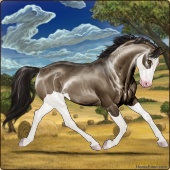 Name: Pixel X JRSun 184Age: 15 Stallion Color: Black Tobiano Breed: Warmblood Foal Rating: E/P/P |  |
