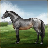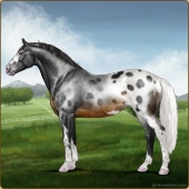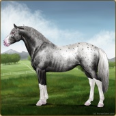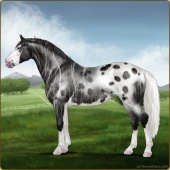 Name: StarO X Everm 184Age: 12 Stallion Color: Blue Roan Splash White Rabicano Varnish Blanket Appaloosa Breed: Irish Sport Horse Foal Rating: E/P/P |  |