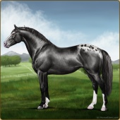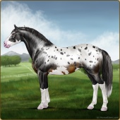Name: StarO X StarO 183Age: 13 Stallion Color: Black Blanket Appaloosa Breed: Irish Sport Horse Foal Rating: P/P/E |  |