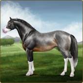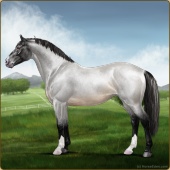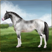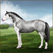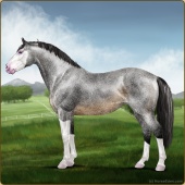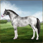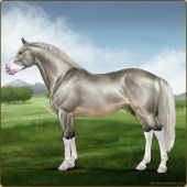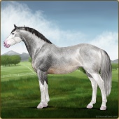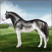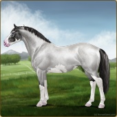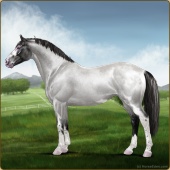 Name: Star Of Argyra ^(EEW)Age: 12 Stallion Color: Silver Roan Grullo Breed: Irish Sport Horse Foal Rating: E/E/W Bravery Rating: Sub-Par |  |