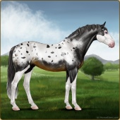 Name: Zhame De MacaAge: 17 Stallion Color: Smokey Black Pearl Sabino Snowflake Appaloosa Breed: Irish Sport Horse Foal Rating: E/E/E |  |