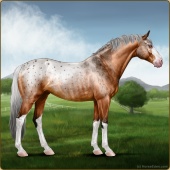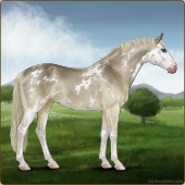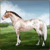 Name: McCallum eprl RDSbSbLpP2P2 EWEAge: 19 Stallion Color: Dunskin Roan Pearl Sabino Blanket Appaloosa Breed: Irish Sport Horse Foal Rating: E/W/E Bravery Rating: Sub-Par |  |