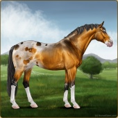 Name: Maca Fancy LadyAge: 14 Stallion Color: Blood Bay Sabino Varnish Appaloosa Breed: Sport Horse Foal Rating: P/P/P |  |