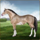 Name: Zahme MacalaureAge: 14 Stallion Color: Buckskin Sabino Breed: Irish Sport Horse Foal Rating: P/P/P |  |