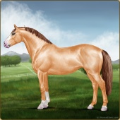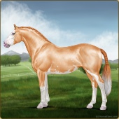 Name: Junyi X GoldM 186Age: 10 Mare Color: Palomino Pearl Splash White Breed: Irish Sport Horse Foal Rating: S/P/P |  |