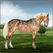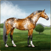 Name: Firefly Legacy APWAge: 10 Mare Color: Gold Champagne Roan Blanket Appaloosa Breed: Knabstrupper Foal Rating: A/P/W |  |
