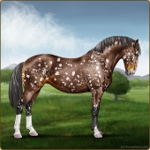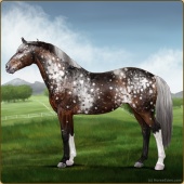 Name: cRios X cRios 178Age: 0 Mare Color: Mahogany Bay Roan Dun Frost Appaloosa Breed: Knabstrupper Foal Rating: Sub/S/W |  |