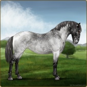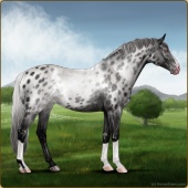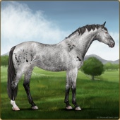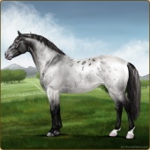 Name: cRios X LBSpr 184Age: 12 Stallion Color: Smokey Blue Roan Blanket Appaloosa Breed: Knabstrupper Foal Rating: Sub/S/W Bravery Rating: Sub-Par |  |