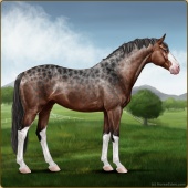 Name: Acher X Amont 184Age: 12 Stallion Color: Silver Blood Bay Dun Sabino Breed: Sport Horse Foal Rating: E/E/E |  |