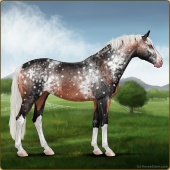Name: Δ | AssyrtikoAge: 13 Mare Color: Silver Blood Bay Dun Sabino Snowflake Appaloosa Breed: Sport Horse Foal Rating: E/W/W Bravery Rating: Sub-Par |  |