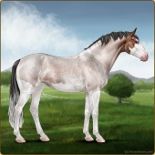 Name: Acher X WWWDr 189Age: 7 Mare Color: Silver Light Bay Roan Sabino Breed: Sport Horse Foal Rating: E/E/E |  |