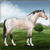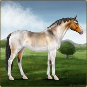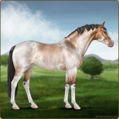 Name: MarondraAge: 15 Mare Color: Silver Buckskin Pearl Sabino Rabicano Breed: Irish Sport Horse Foal Rating: E/W/E |  |