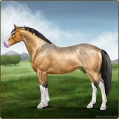 Name: Acher X Dsect 187Age: 9 Mare Color: Buckskin Pearl Sabino Breed: Thoroughbred Foal Rating: W/E/E |  |