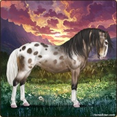 Name: 🥃 Ambition WEEAge: 8 Mare Color: Chocolate Dunalino Roan Snowcap Appaloosa Breed: Knabstrupper Foal Rating: W/E/E |  |