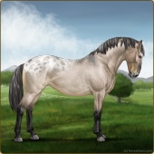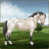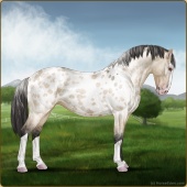 Name: Philippa EEEAge: 9 Mare Color: Dunalino Roan Varnish Appaloosa Breed: Knabstrupper Foal Rating: E/E/E |  |