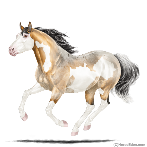 Color: Golden Bay Roan Dun Splash White Rabicano Frame