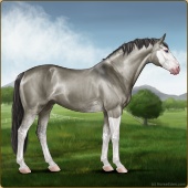Name: Legol X Mindt 186Age: 10 Mare Color: Silver Grullo Splash White Breed: Sport Horse Foal Rating: E/E/E |  |