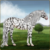 Name: EEE Spotted GraceAge: 20 Mare Color: Flaxen Red Dun Leopard Appaloosa Breed: Sport Horse Foal Rating: E/E/E |  |