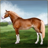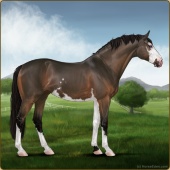 Name: Light bay spl EEEAge: 14 Mare Color: Light Bay Splash White Breed: Irish Sport Horse Foal Rating: E/E/E |  |