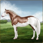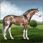 Name: Mountain Dew EWWAge: 20 Stallion Color: Mahogany Bay Roan Dun Tobiano Breed: Sport Horse Foal Rating: E/W/W |  |