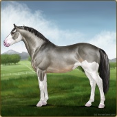 Name: ☍ Obi One ChromosomeAge: 13 Gelding Color: Grullo Splash White Sabino Breed: Irish Sport Horse Foal Rating: E/E/E |  |