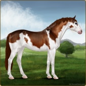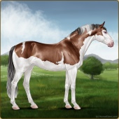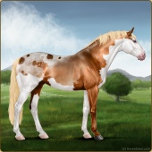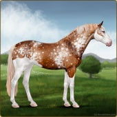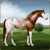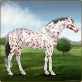 Name: Helio X Starf 178Age: 18 Mare Color: Chestnut Splash White Appaloosa Breed: Sport Horse Foal Rating: E/E/E |  |