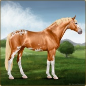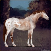 Name: (EEE) HeliotropeAge: 11 Stallion Color: Flaxen Chestnut Splash White Blanket Appaloosa Breed: Sport Horse Foal Rating: E/E/E |  |