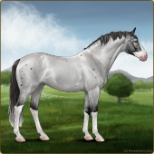 Name: CQE Helios Dale 1/7 PPPAge: 15 Mare Color: Grullo Tobiano Splash White Varnish Leopard Appaloosa Breed: Irish Sport Horse Foal Rating: P/P/P Bravery Rating: Sub-Par |  |