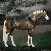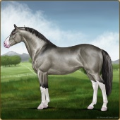 Name: ✯Blingin EEEAge: 16 Stallion Color: Silver Mahogany Bay Dun Splash White Sabino Breed: Sport Horse Foal Rating: E/E/E |  |