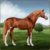 Name: EHF QuetzalcoatlAge: 10 Mare Color: Chestnut Splash White Breed: Irish Sport Horse Foal Rating: W/W/E Bravery Rating: Sub-Par |  |