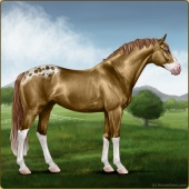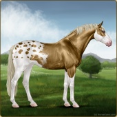 Name: SCFHe X SCFMa 185Age: 11 Mare Color: Palomino Splash White Varnish Appaloosa Breed: Sport Horse Foal Rating: E/E/E |  |