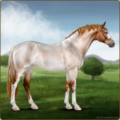 Name: Helio X BlueL 181Age: 15 Mare Color: Red Roan Splash White Rabicano Breed: Sport Horse Foal Rating: E/E/E |  |