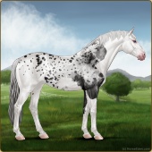 Name: Phaethon (EEE 1/7)Age: 17 Stallion Color: Silver Roan Splash White Rabicano Blanket Appaloosa Breed: Sport Horse Foal Rating: E/E/E For Breeding! |  |