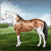 Name: [RWC] Treasured HaloAge: 16 Mare Color: Buckskin Roan Splash White Blanket Appaloosa Breed: Sport Horse Foal Rating: E/E/E |  |