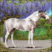 Name: Briti X ltThu 175Age: 21 Mare Color: Silver Roan Tobiano Splash White Sabino Frame Appaloosa Breed: Sport Horse |  |