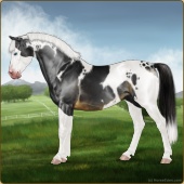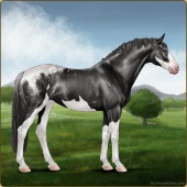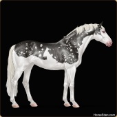 Name: 🎬Rain FrogAge: 0 Stallion Color: Smokey Black Tobiano Splash White Fewspot Appaloosa Breed: Sport Horse |  |