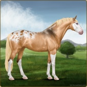 Name: 🎬ArtisanAge: 0 Mare Color: Silver Copper Bay Splash White Snowcap Appaloosa Breed: Sport Horse |  |