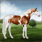 Name: Briti X Tesla 178Age: 18 Mare Color: Chestnut Splash White Sabino Leopard Appaloosa Breed: Sport Horse |  |