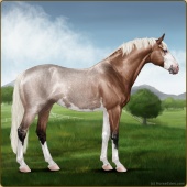 Name: Briti X Doppe 176Age: 20 Mare Color: Silver Buckskin Tobiano Splash White Sabino Snowcap Appaloosa Breed: Sport Horse |  |