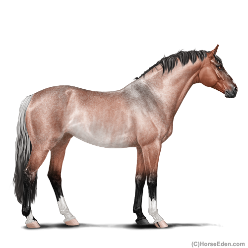 Color: Blood Bay Roan Dun Rabicano