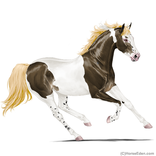 Color: Dark Flaxen Liver Chestnut Tobiano Sabino