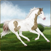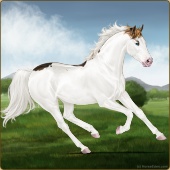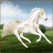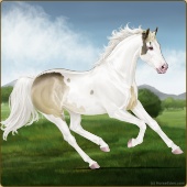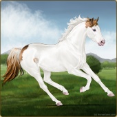 Name: foal 92464327Age: 10 Stallion Color: Cremello Dun Tobiano Splash White Rabicano Breed: Thoroughbred |  |
