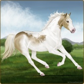 Name: foal 95398907Age: 6 Stallion Color: Cremello Dun Tobiano Splash White Sabino Breed: Thoroughbred |  |