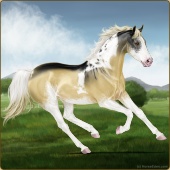 Name: foal 85329436Age: 6 Stallion Color: Dunalino Tobiano Splash White Sabino Breed: Thoroughbred |  |