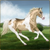 Name: foal 16747363Age: 8 Stallion Color: Dunalino Tobiano Splash White Breed: Thoroughbred |  |
