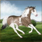 Name: foal 67945439Age: 6 Mare Color: Brown Dunskin Tobiano Splash White Sabino Rabicano Breed: Thoroughbred |  |