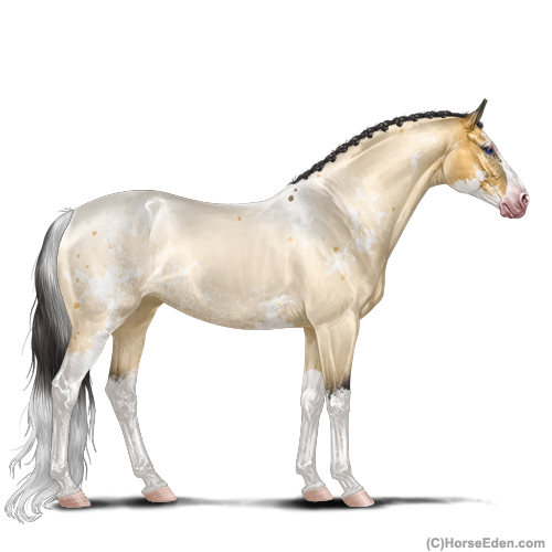 Color: Golden Dunskin Roan Splash White Sabino Rabicano
