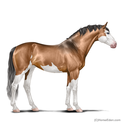 Name: Caramel Rose (EEE)Age: 7 Stallion Color: Buckskin Splash White Sabino Breed: Sport Horse Foal Rating: E/E/E For Breeding! |  |