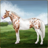 Name: foal 9312818Age: 9 Mare Color: Mahogany Bay Splash White Blanket Appaloosa Breed: Irish Sport Horse |  |